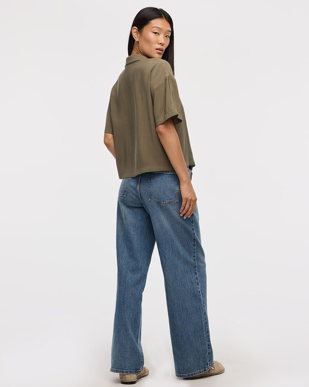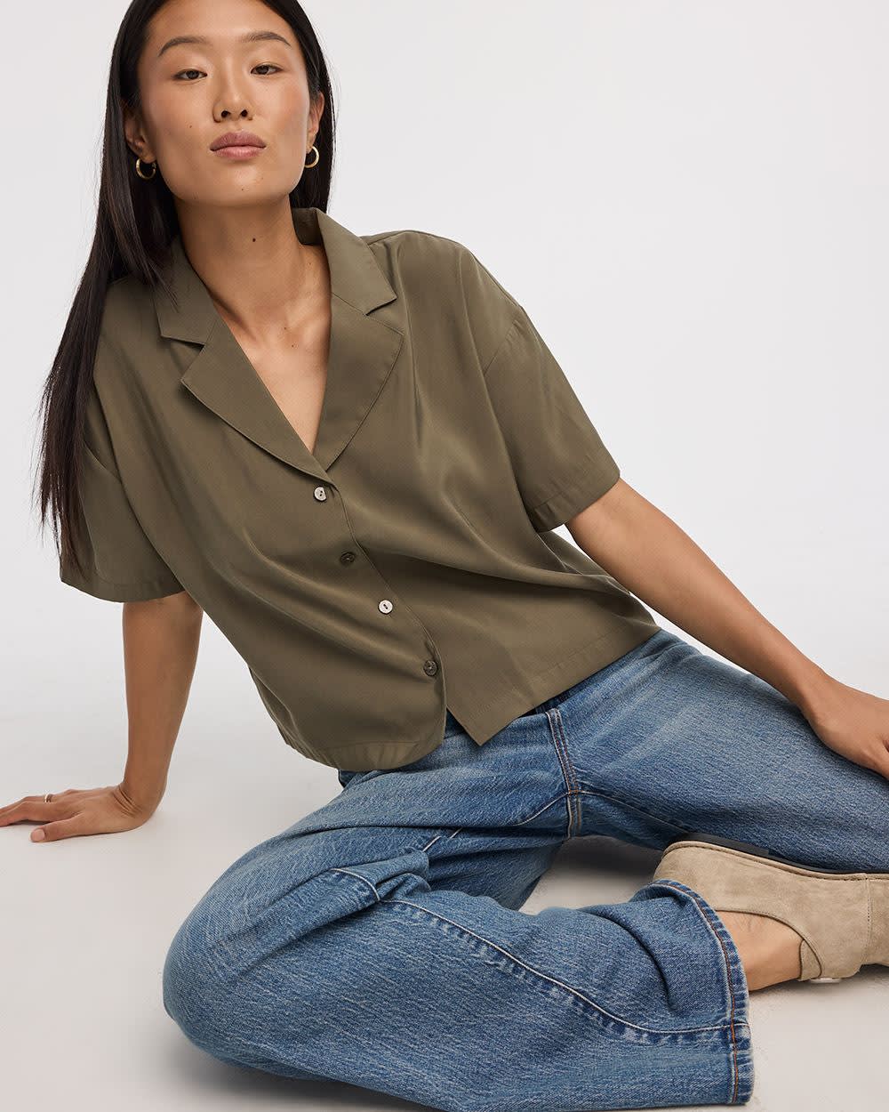 Cette blouse à manches courtes dotée d'un col pyjama s'agence parfaitement avec n'importe quel bas, pour un style chic ou décontracté. Portez-la seule ou ouverte par-dessus une camisole.
