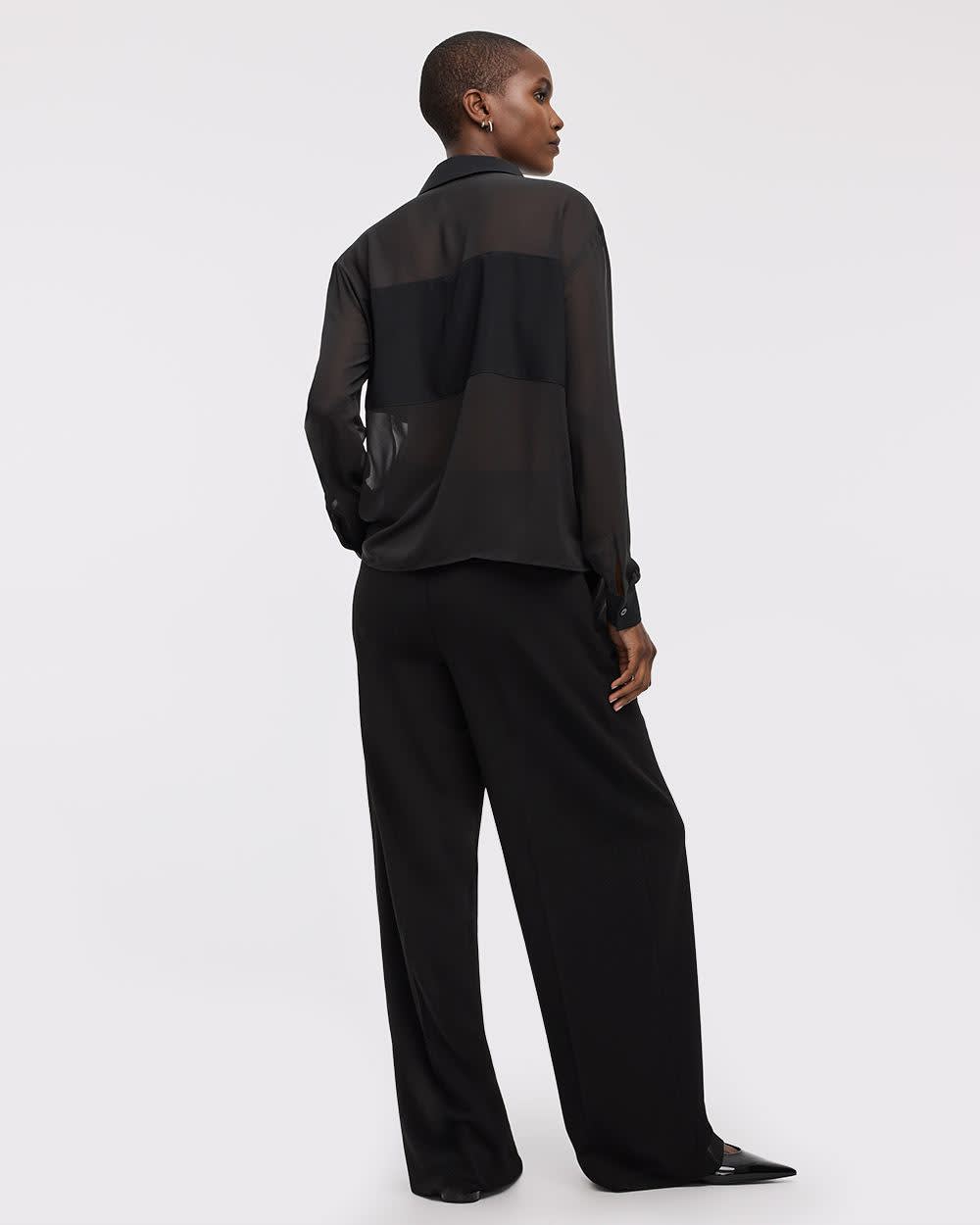 Conçue dans une coupe semi-ajustée, cette superbe chemise en mousseline transparente s'agence parfaitement avec votre paire de jeans favorite, une pièce idéale pour une soirée entre amis.