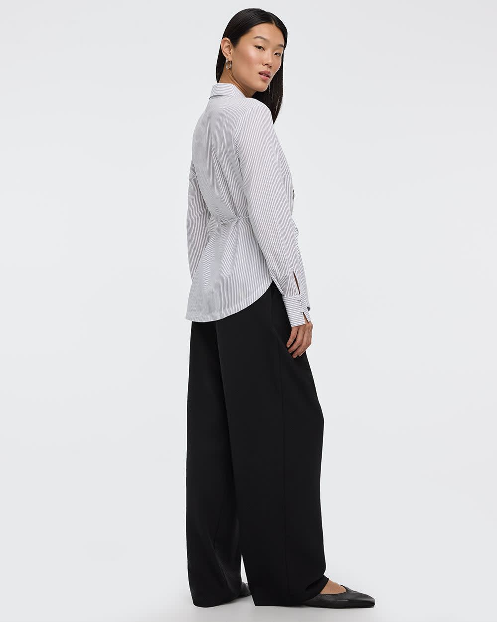Chemise en popeline rayée à manches longues avec ceinture à nouer