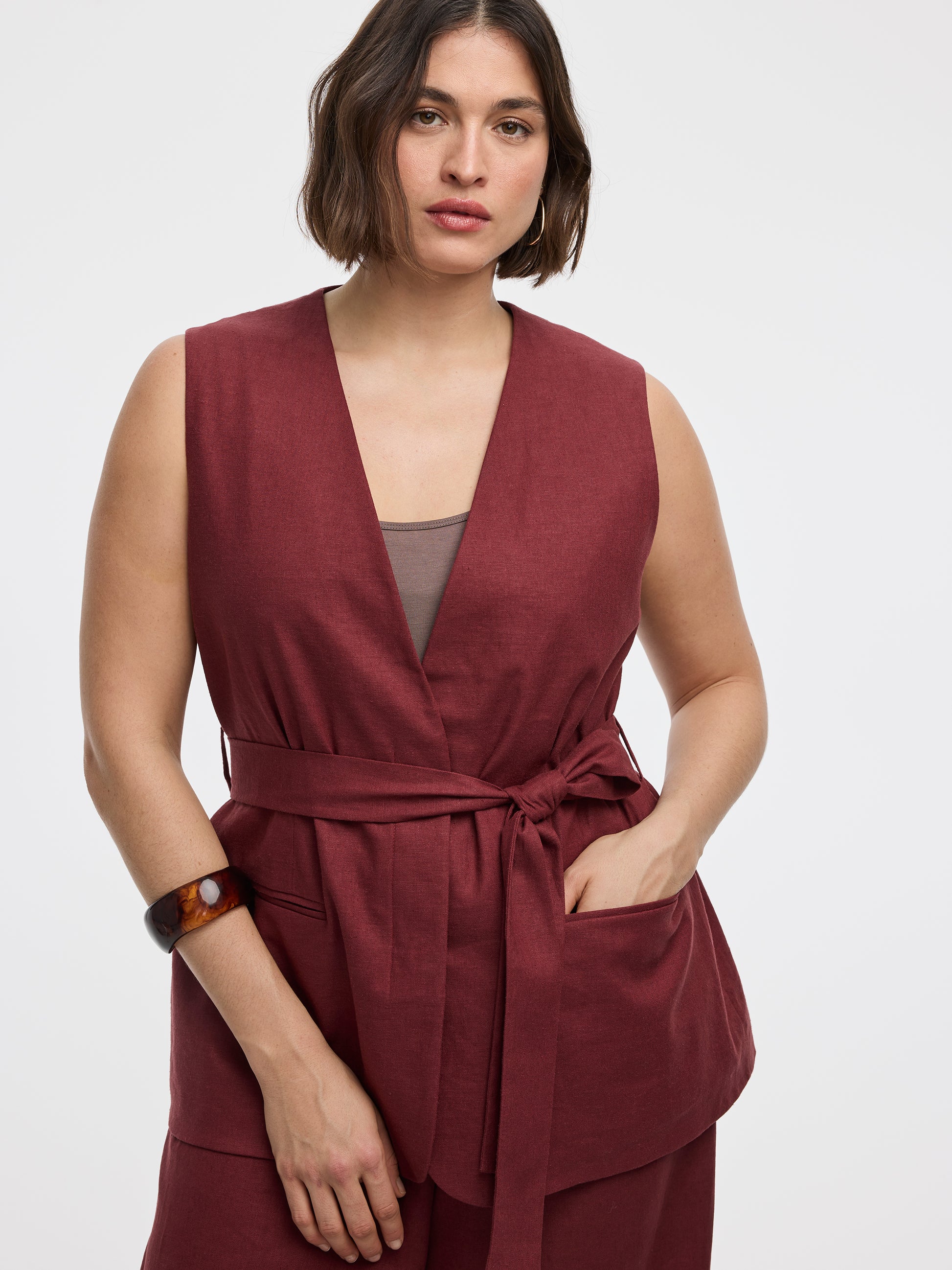Veston sans manches avec ceinture