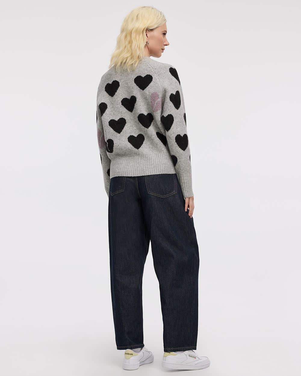 Pull à manches longues et col rond avec coeurs