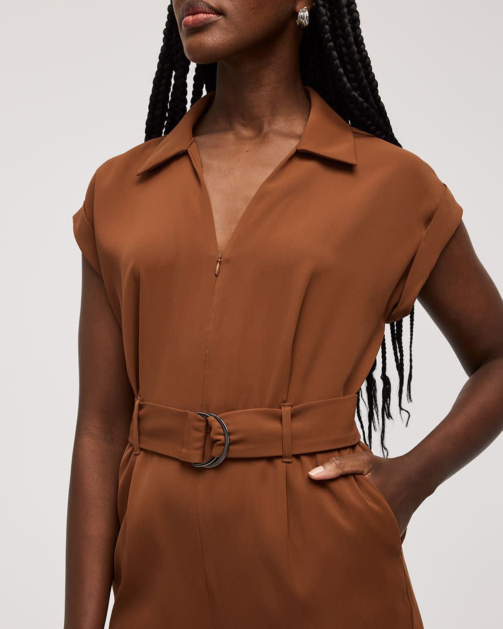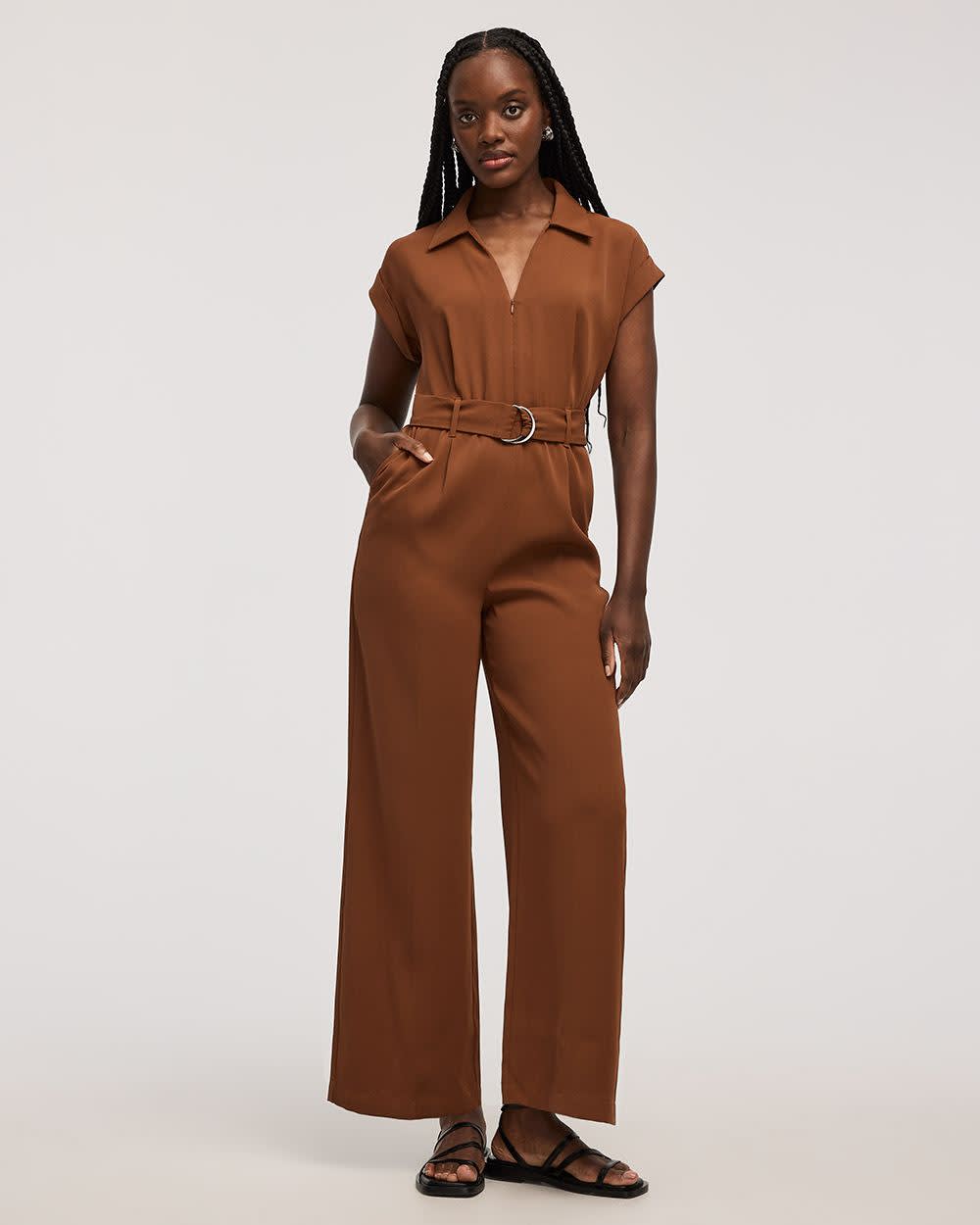 "Cette combinaison super tendance dotée d'une fermeture à glissière et d'une ceinture tendance à la taille deviendra rapidement votre nouvelle tenue favorite cette saison.
