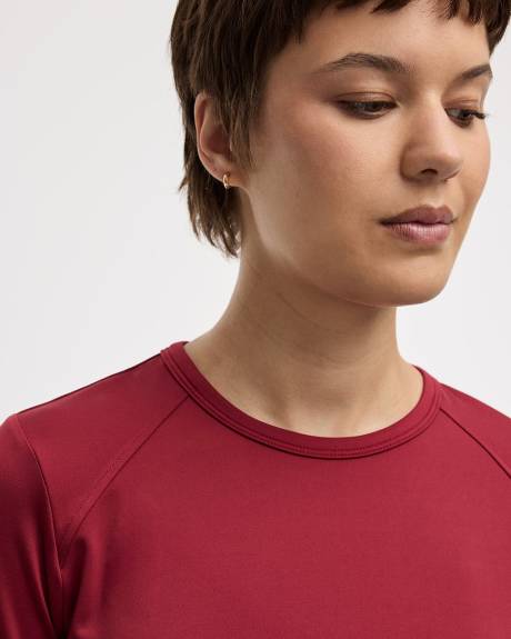Votre nouveau haut favori pour le studio de yoga. Conçu dans un confortable tricot interlock et arborant une coupe écourtée, ce t-shirt à manches longues s'agence parfaitement avec vos leggings à taille haute.