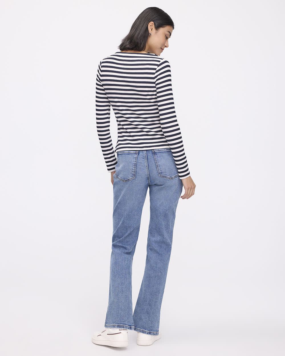 Haut côtelé rayé à manches longues et col bateau