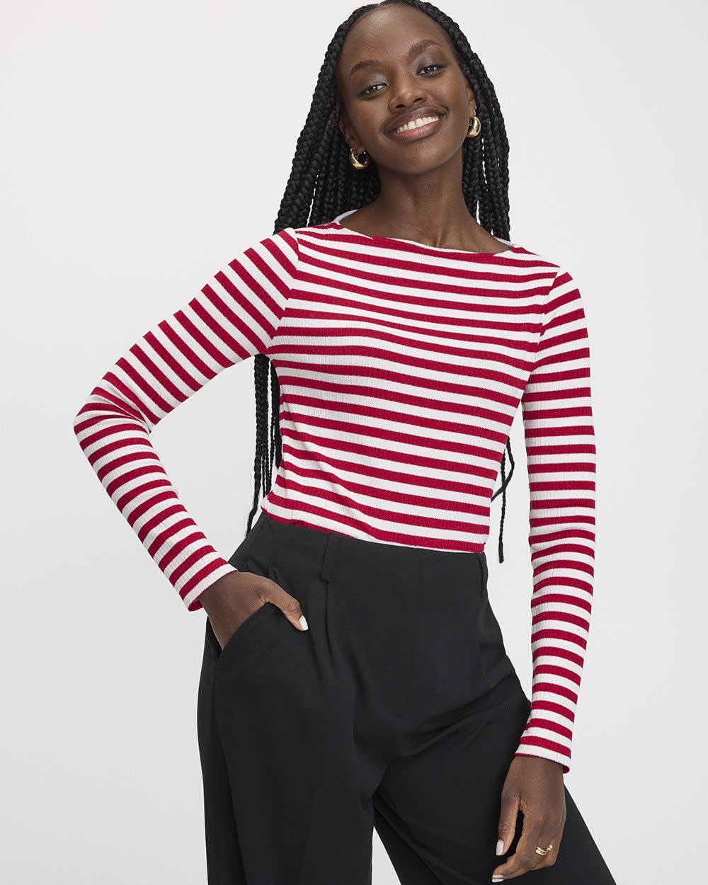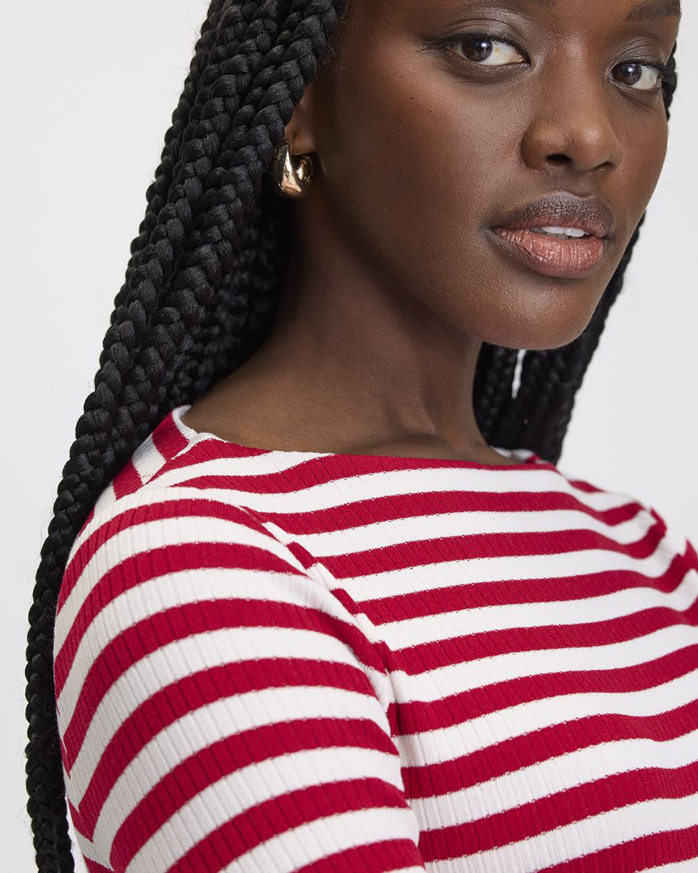 Conçu en doux tricot côtelé, ce haut à manches longues doté d'un col bateau est idéal pour la vie de tous les jours.