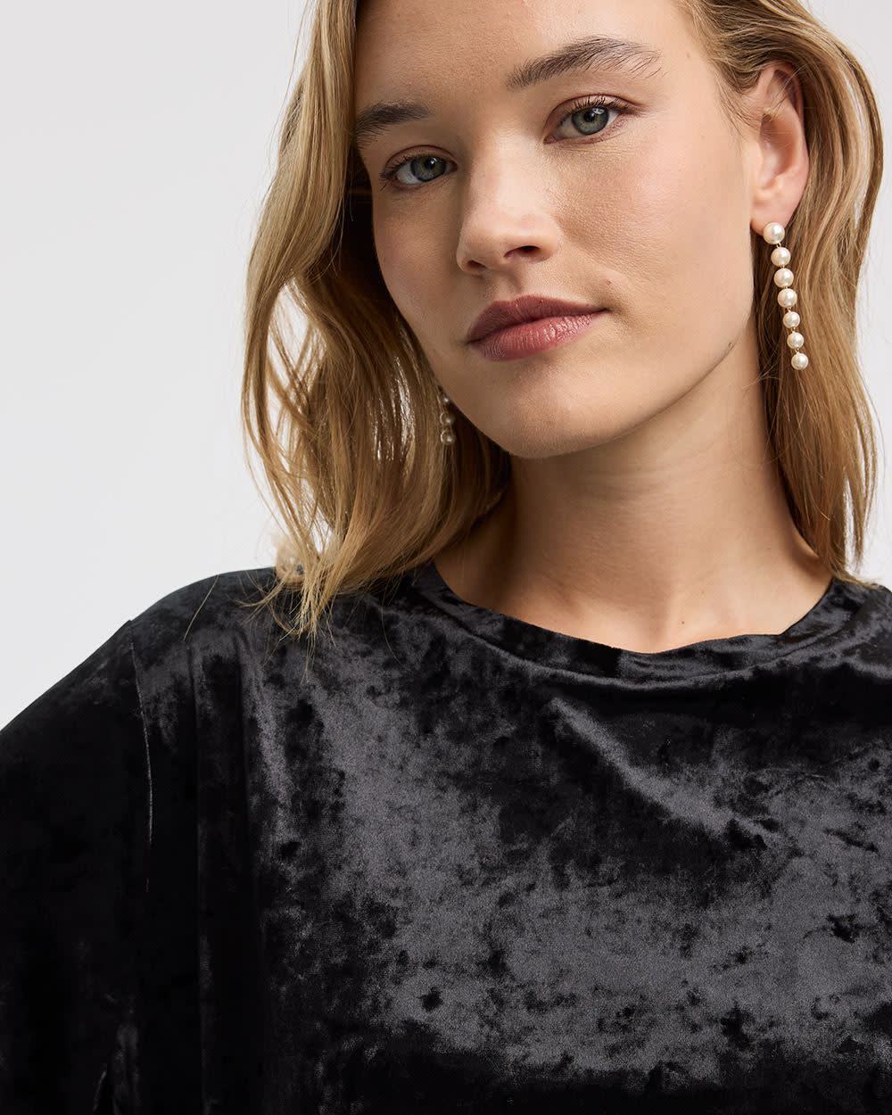 Ce magnifique haut à manches courtes conçu en superbe tricot de velours ajoutera sans aucun doute une touche d'éclat à votre tenue, et s'agence parfaitement avec votre paire de jeans favorite.