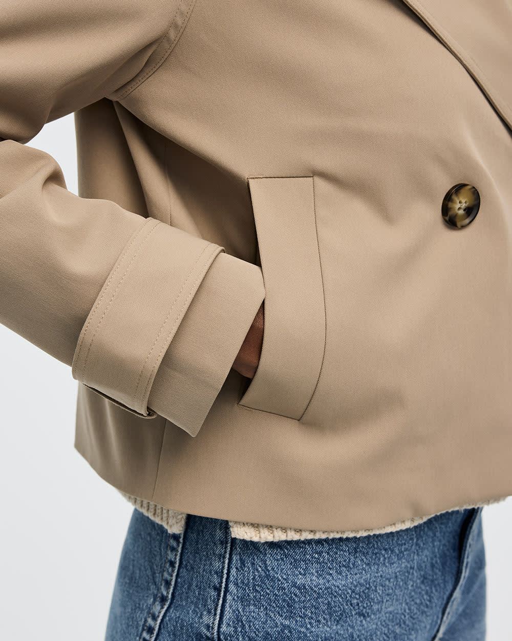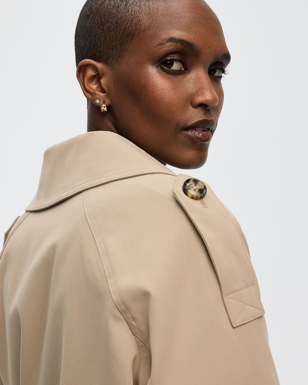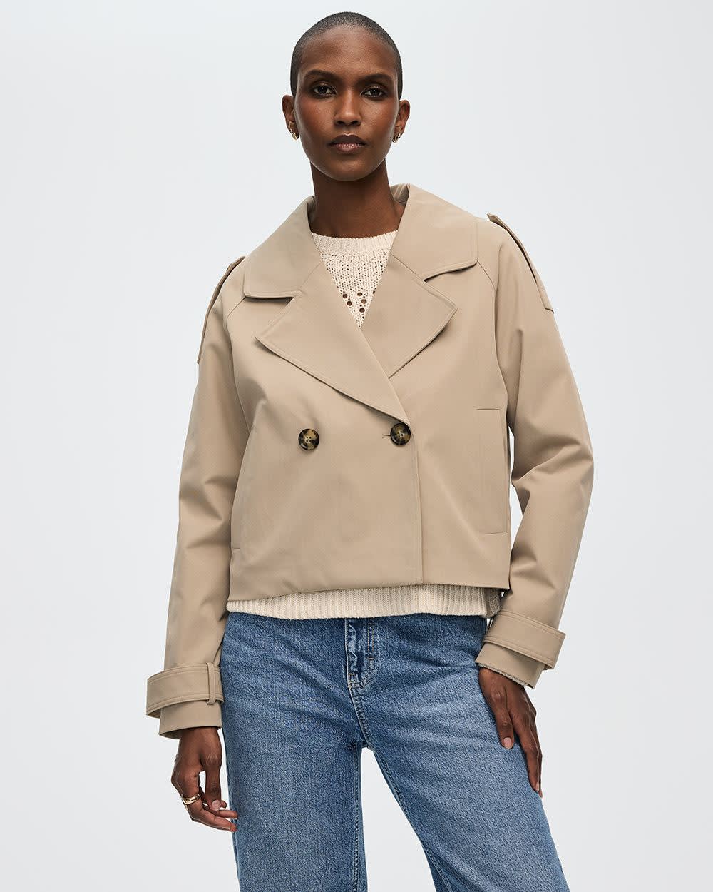 Peaufinez vos tenues de mi-saison avec ce magnifique manteau trench court pour un style qui saura assurément se démarquer.
