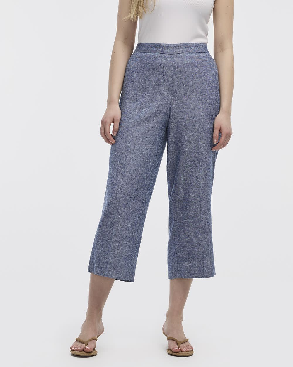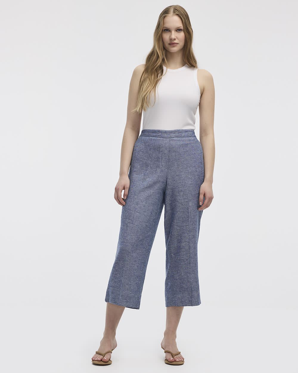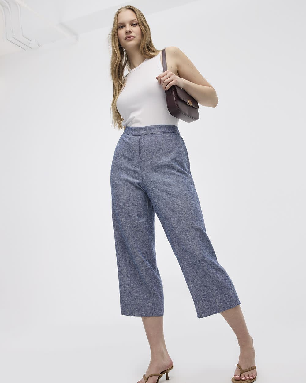 "Ce pantalon à jambe large deviendra rapidement votre bas saisonnier favori. Conçu dans un doux mélange de lin pour un confort absolu tout au long de la journée.