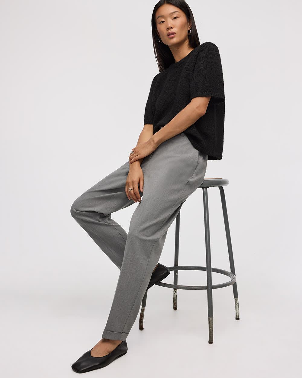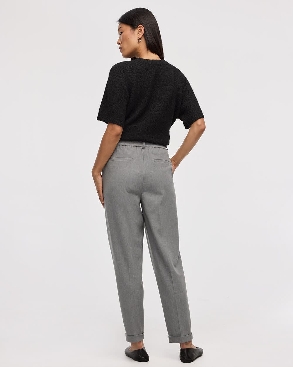 Rehaussez votre garde-robe professionnelle avec ce pantalon à jambe fuselée doté d'une taille haute avec élastique au dos et conçu dans un confortable tissu extensible. Un essentiel pour les journées au bureau.