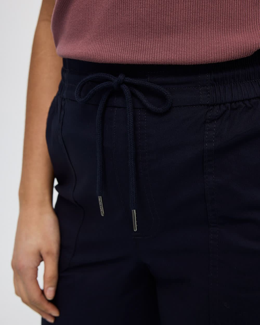 "Super tendance, ce pantalon capri conçu en popeline et doté d'une jambe droite et d'une confortable taille élastique est idéal pour le quotidien.