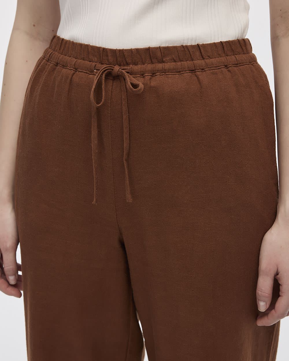 "Ce pantalon à jambe large deviendra rapidement l'un de vos bas favoris. Conçu en mélange de lin doux pour un confort absolu tout au long de la journée.