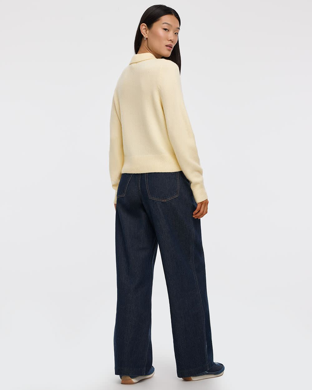Ce pull à manches longues doté d'un col polo est idéal pour la vie de tous les jours, conçu en doux tricot pour un confort douillet.