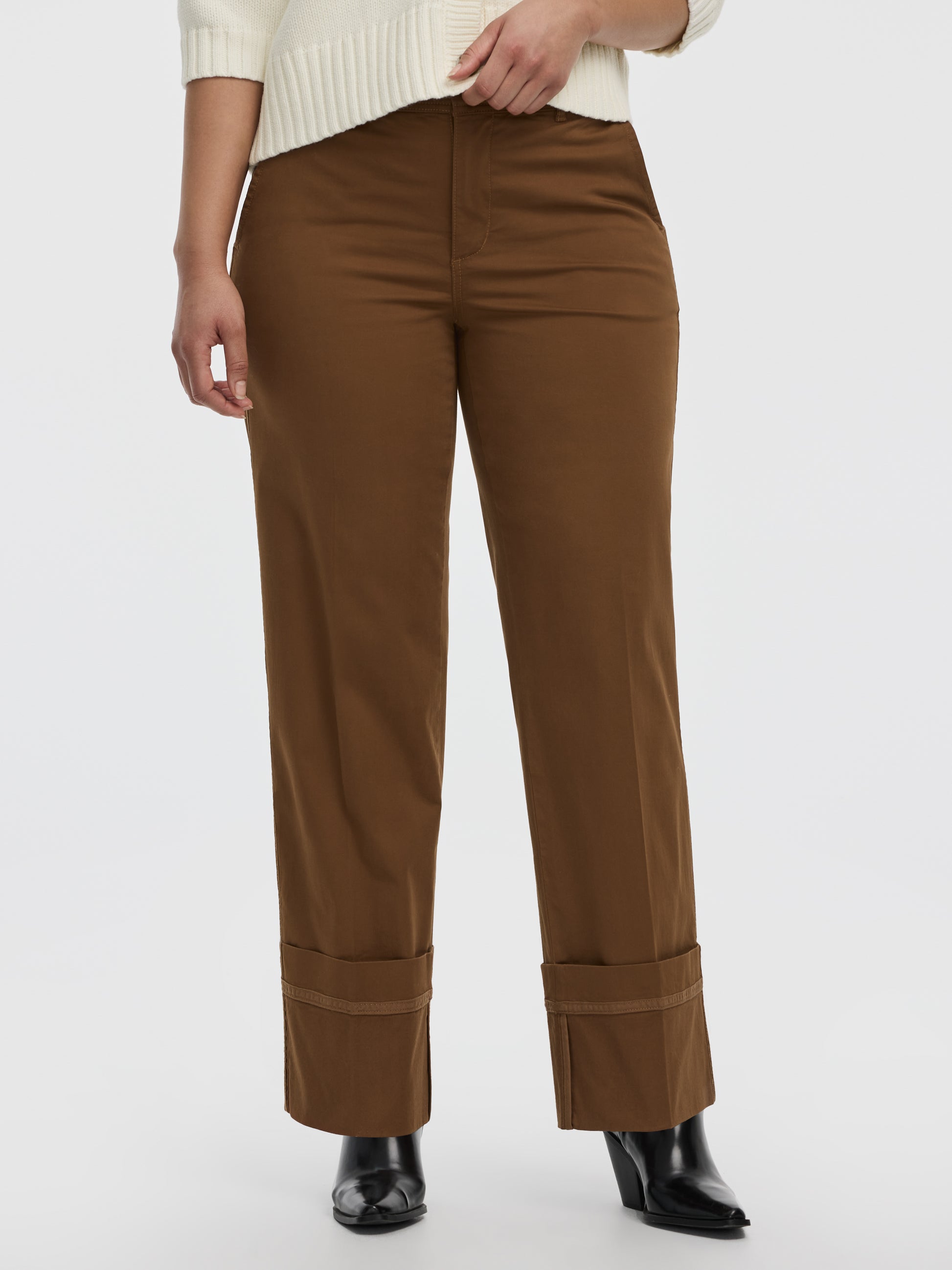 Pantalon chino à taille mi-haute et jambe droite à revers