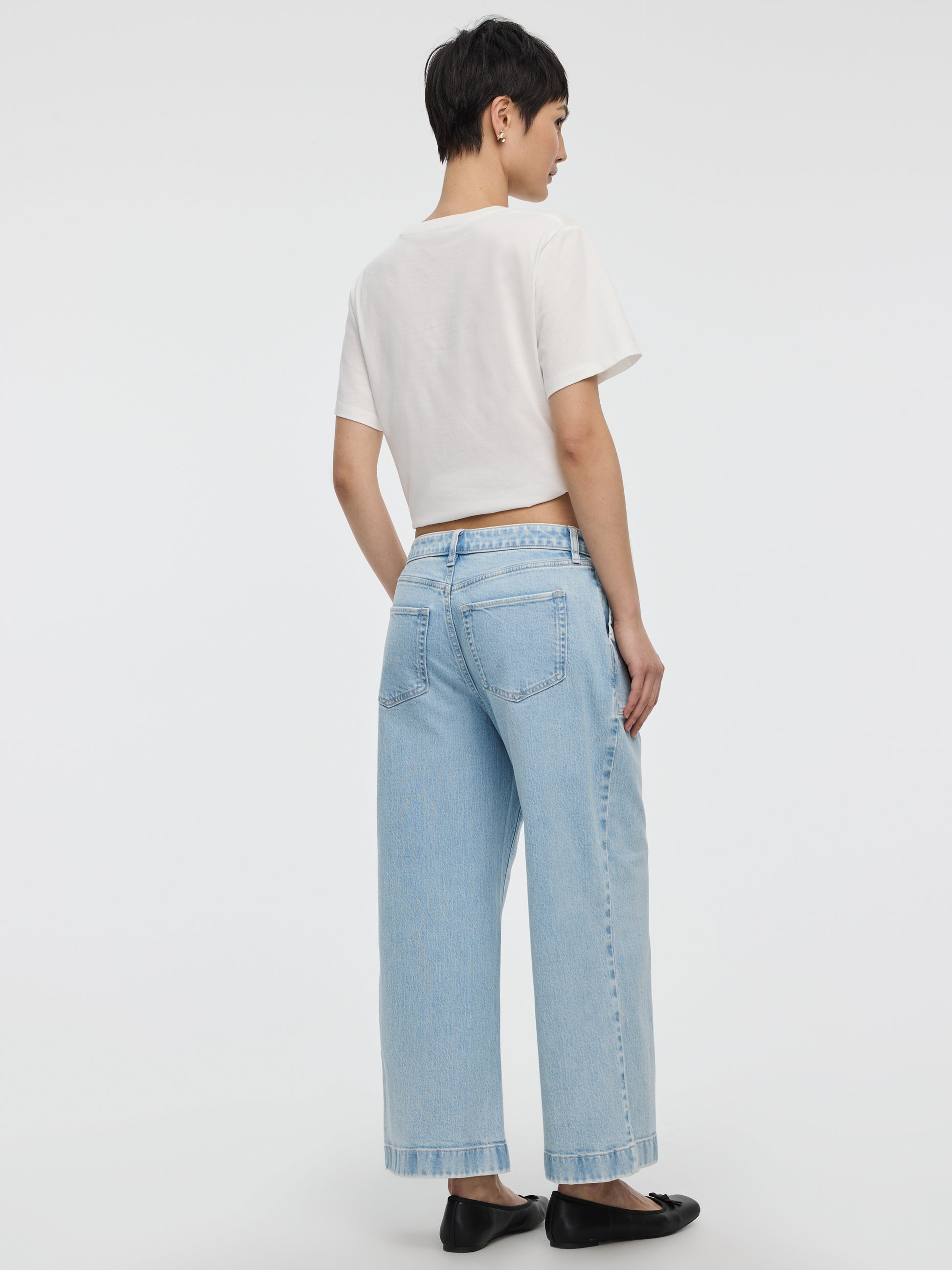 Jean court à jambe large et taille haute
