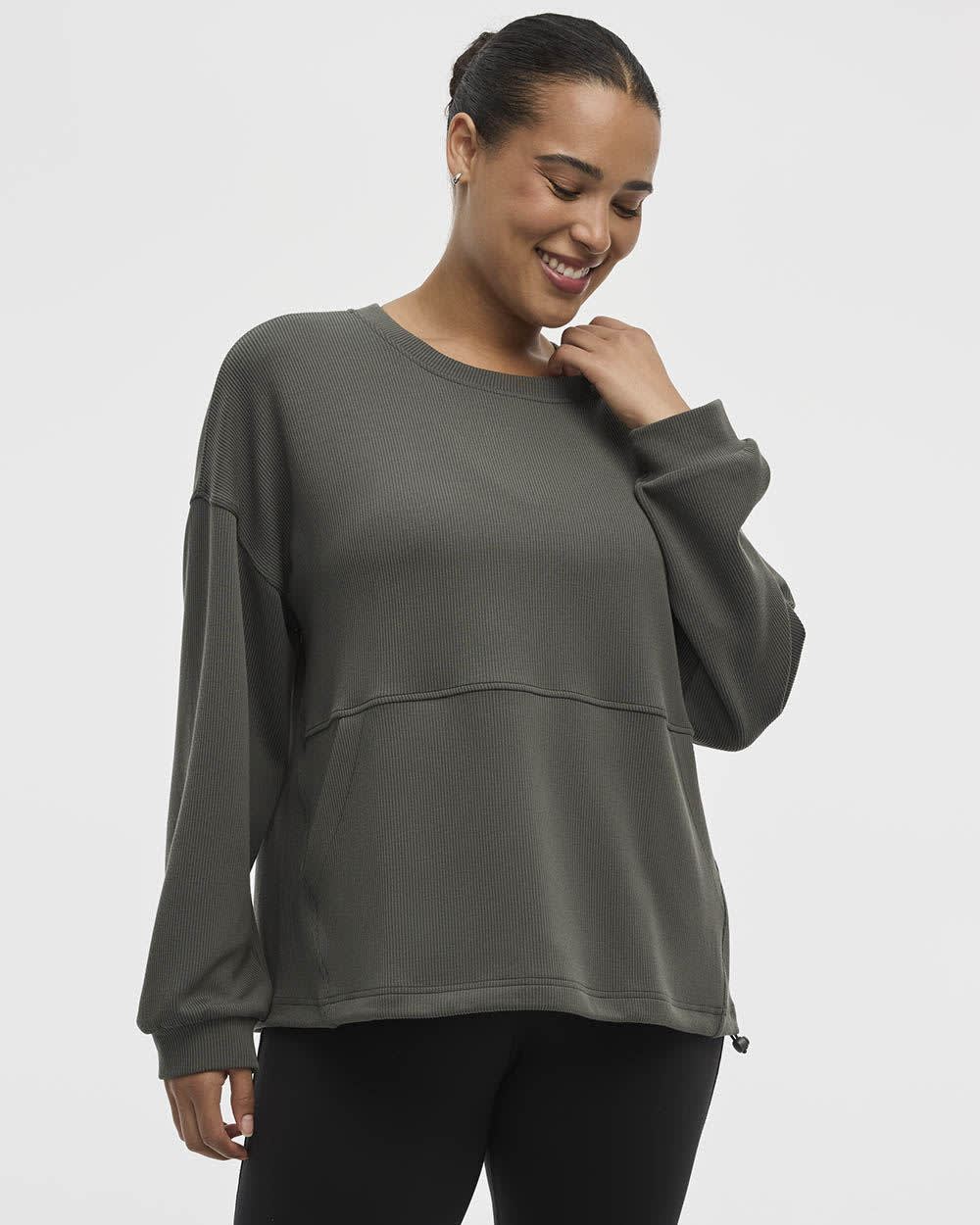Portez ce pull à col rond conçu dans un unique tricot ottoman pour un confort optimal lors de vos moments de détente.