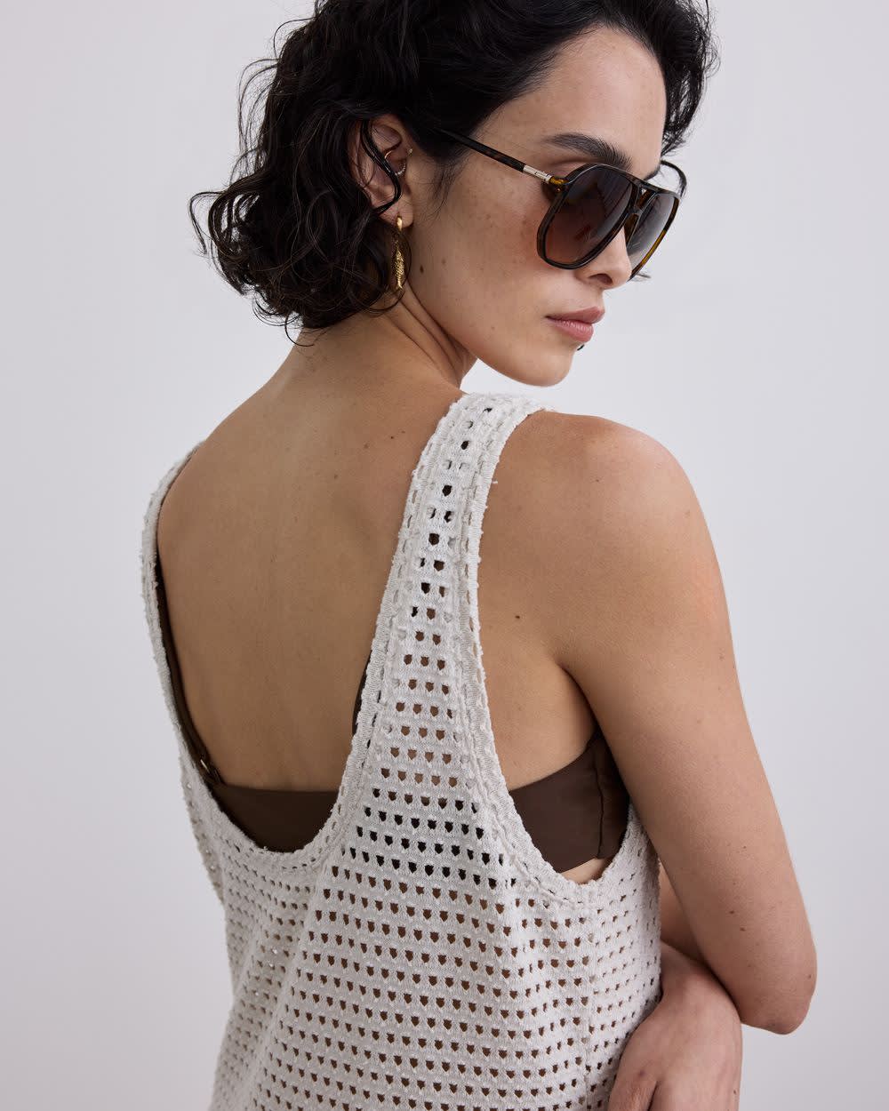 Robe midi crochetée sans manches et col en U