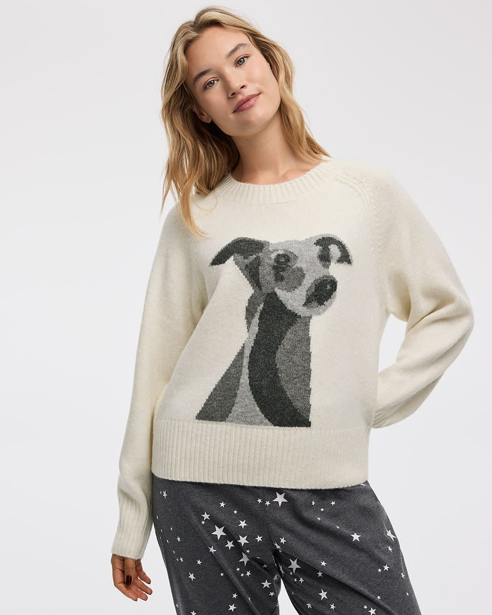 Ce pull à manches longues et col rond, décoré d'un joli chien, est la pièce parfaite pour un confort douillet à la maison.