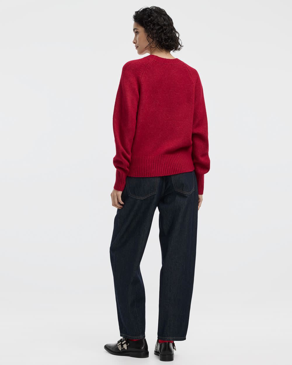 Ce pull à manches longues et col rond, orné d'une brodeerie en forme de coeur, est la pièce parfaite pour un confort douillet à la maison.
