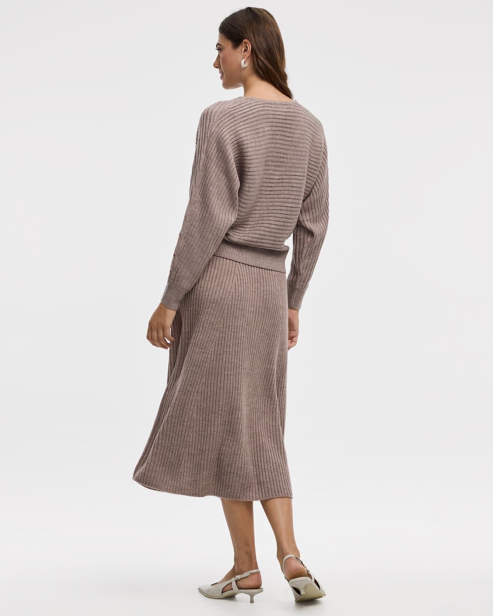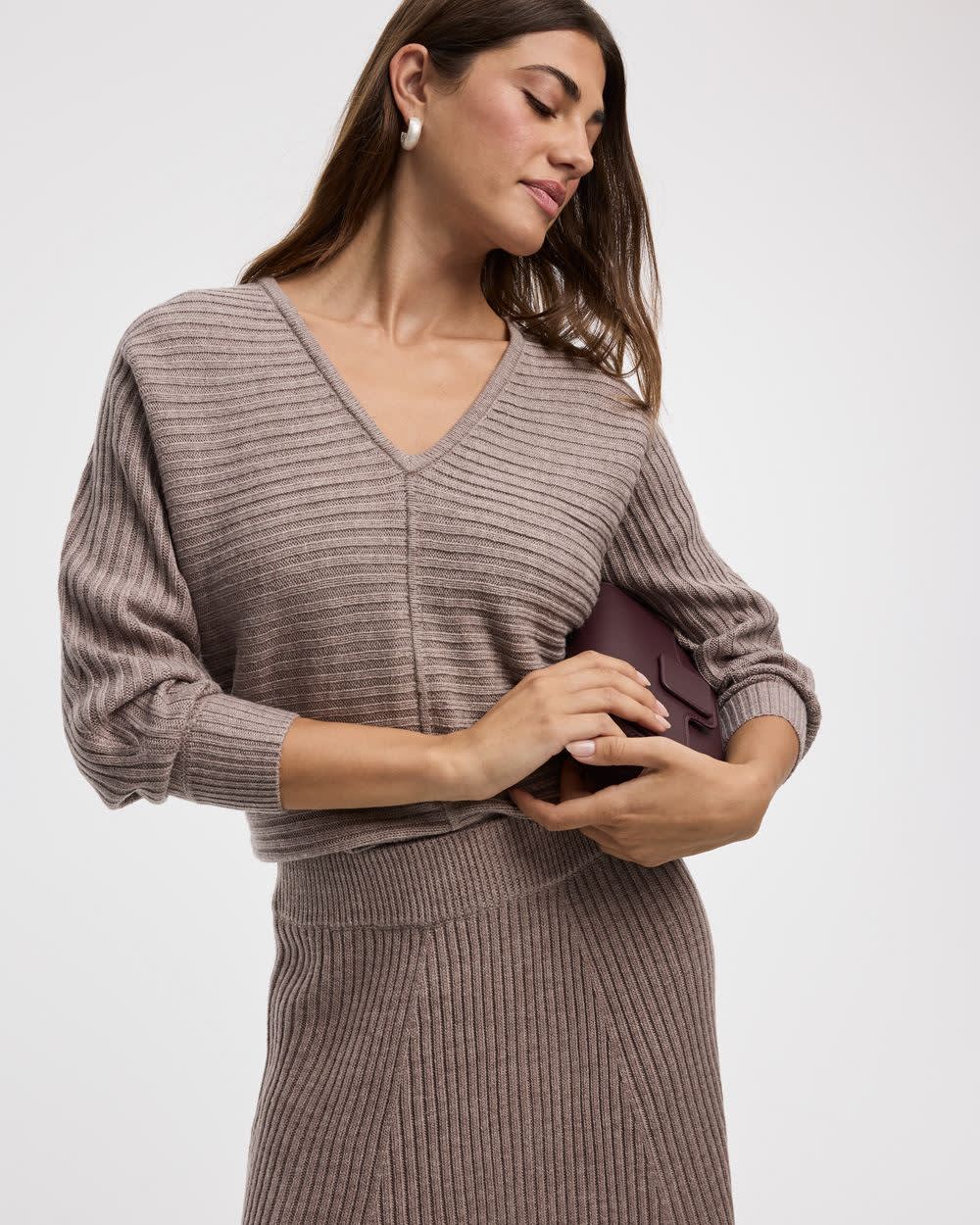 Pull côtelé à manches longues dolman et col V