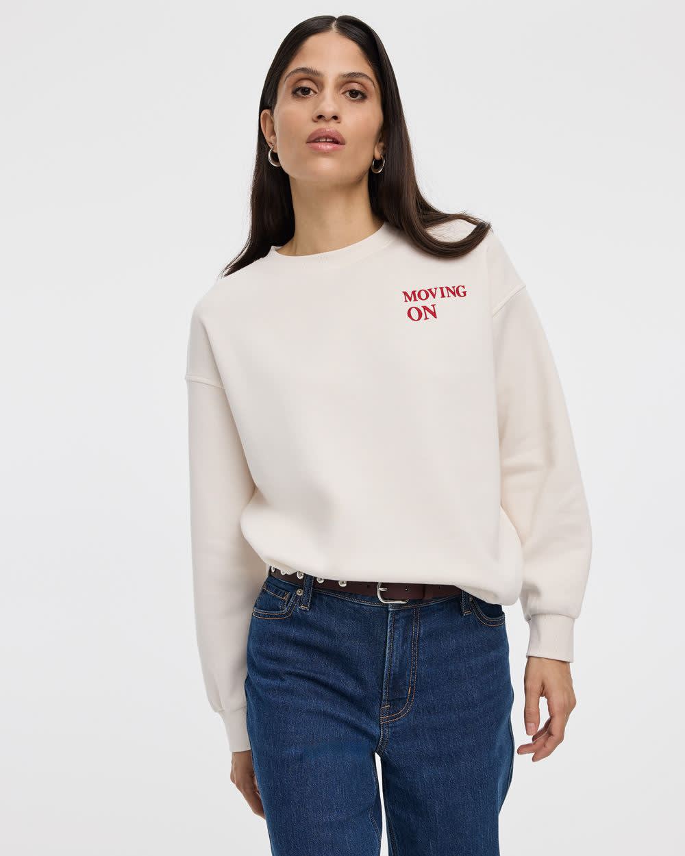 Pull en molleton à manches longues et col rond avec citations