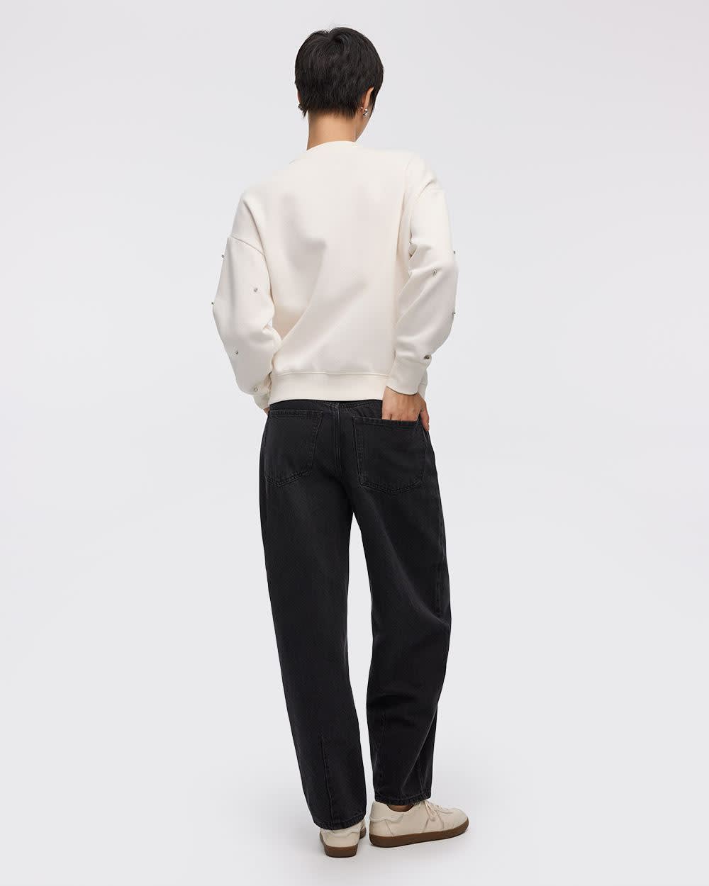 Vous adorerez le doux tricot de molleton extensible de ce pull à col rond et manches longues. Orné de strass scintillants qui lui ajoutent une jolie touche féminine, ce haut est une pièce essentielle à ajouter à votre garde-robe.
