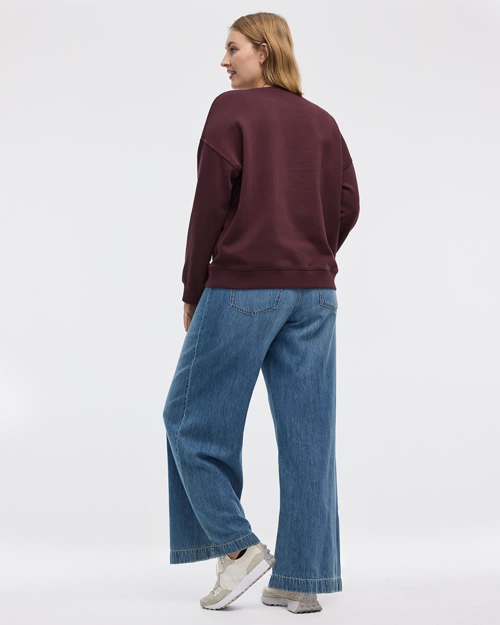 Vous adorerez le doux tricot de molleton extensible de ce pull à col rond et manches longues. Assurément une pièce essentielle à ajouter à votre garde-robe.