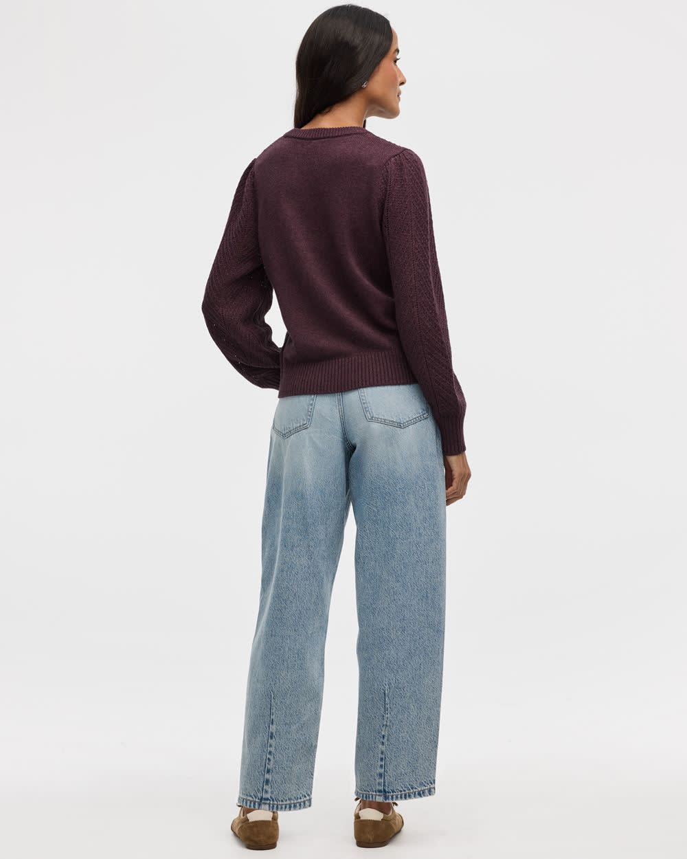 Le pull le plus mignon pour le quotidien, ce haut à manches longues ballons conçu dans un féminin tricot à mailles pointelle ajourées vous procurera un confort douillet et un superbe style.