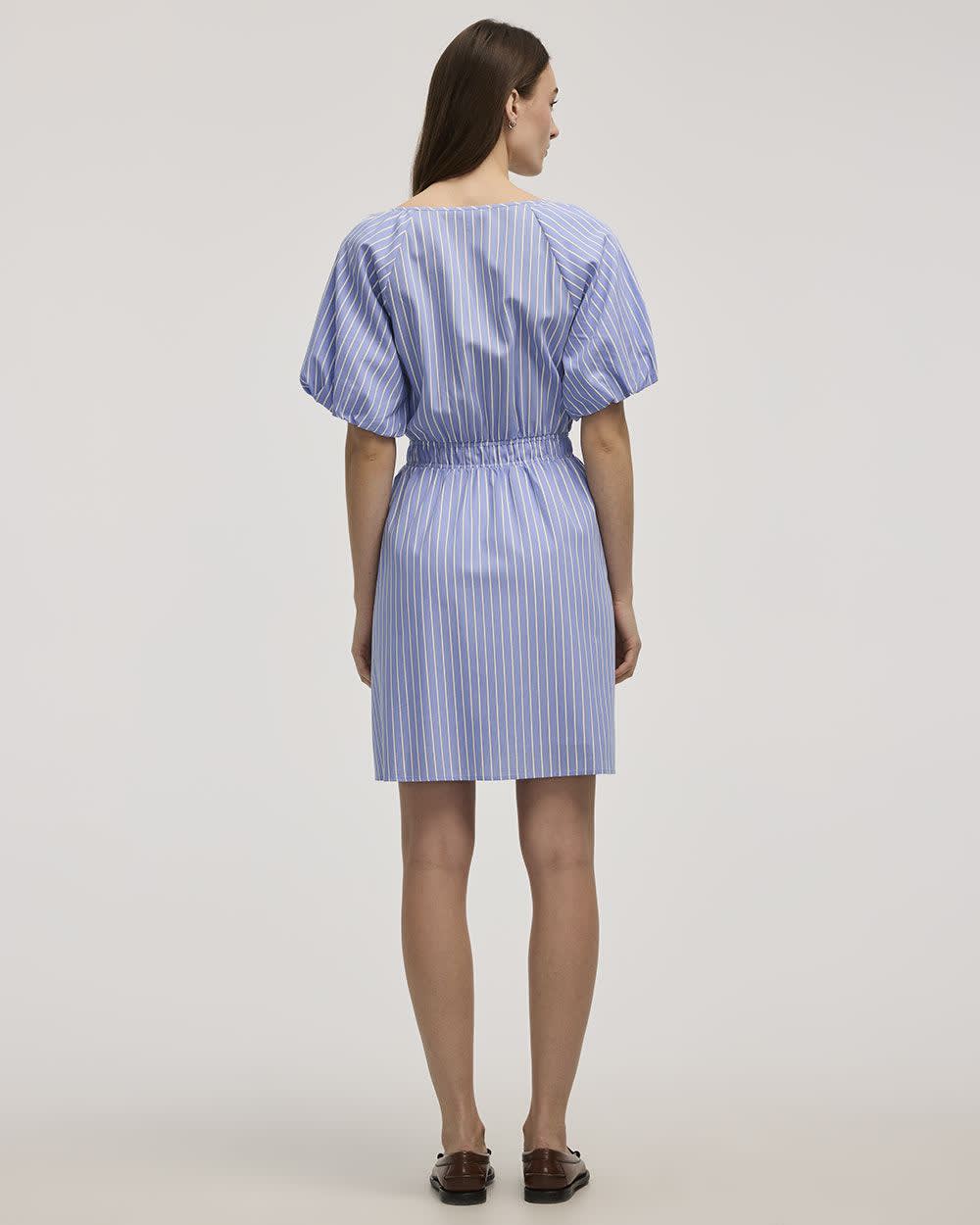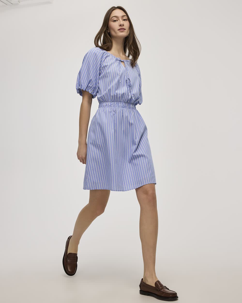 Robe cintrée et évasée à manches courtes avec détails à nouer à l'encolure