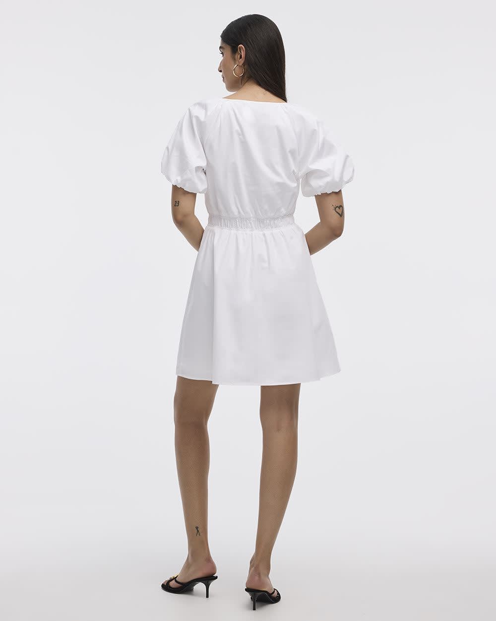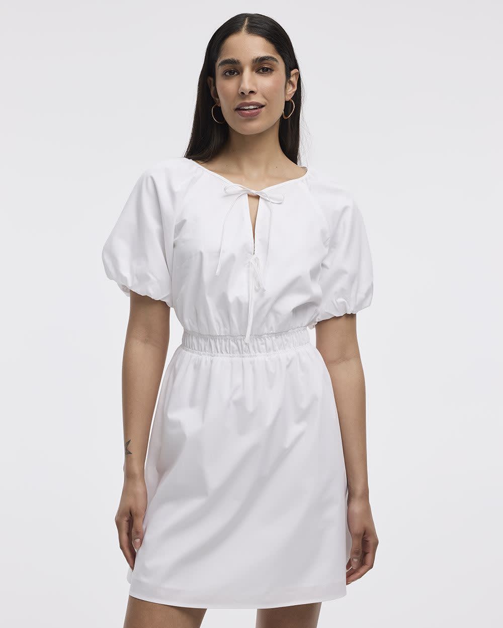 Robe cintrée et évasée à manches courtes avec détails à nouer à l'encolure