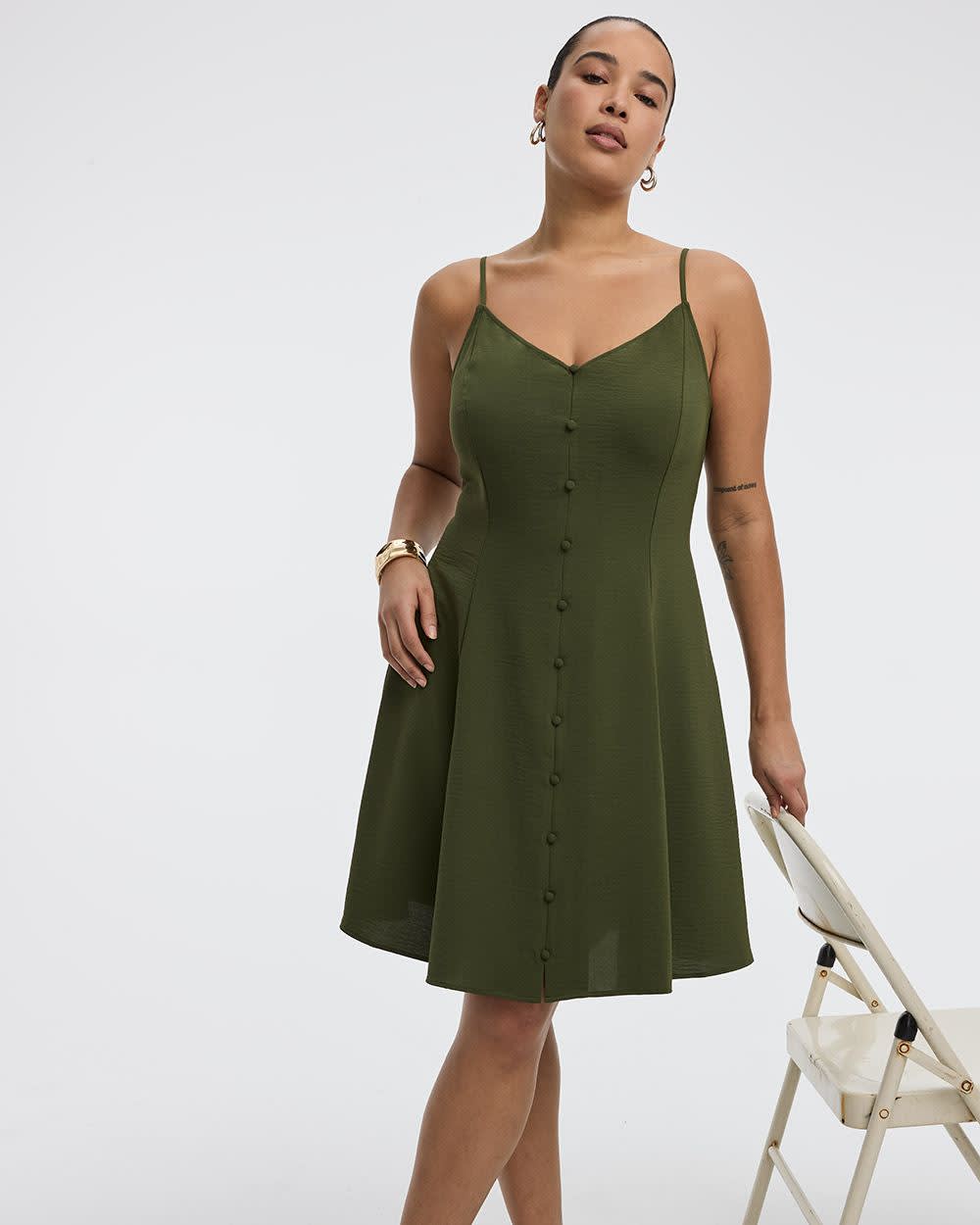 Cette superbe robe évasée sans manches, conçue en satin et dotée d'un col V, est définitivement un essentiel à ajouter à votre garde-robe de vacances pour un style tendance rapide et efficace.
