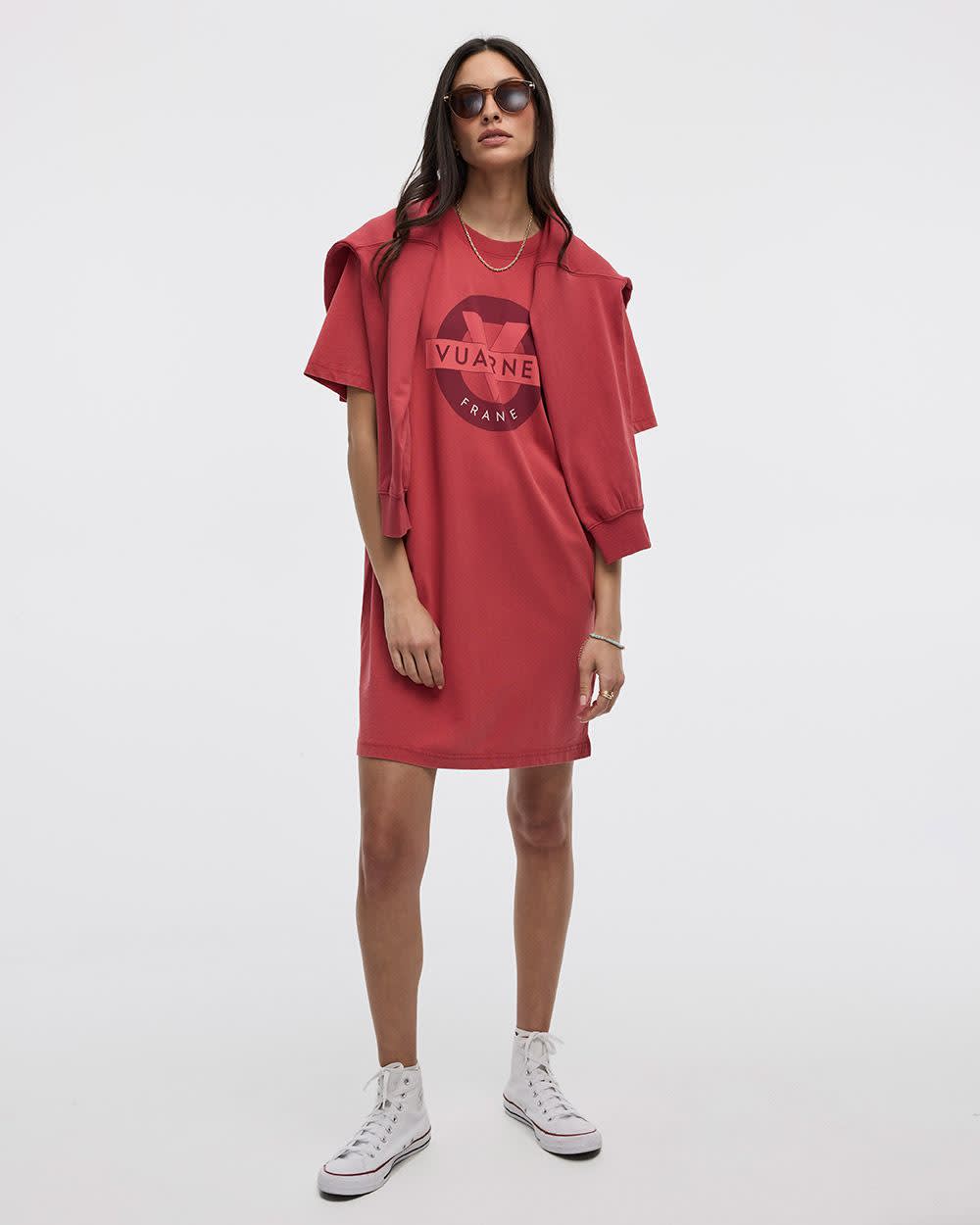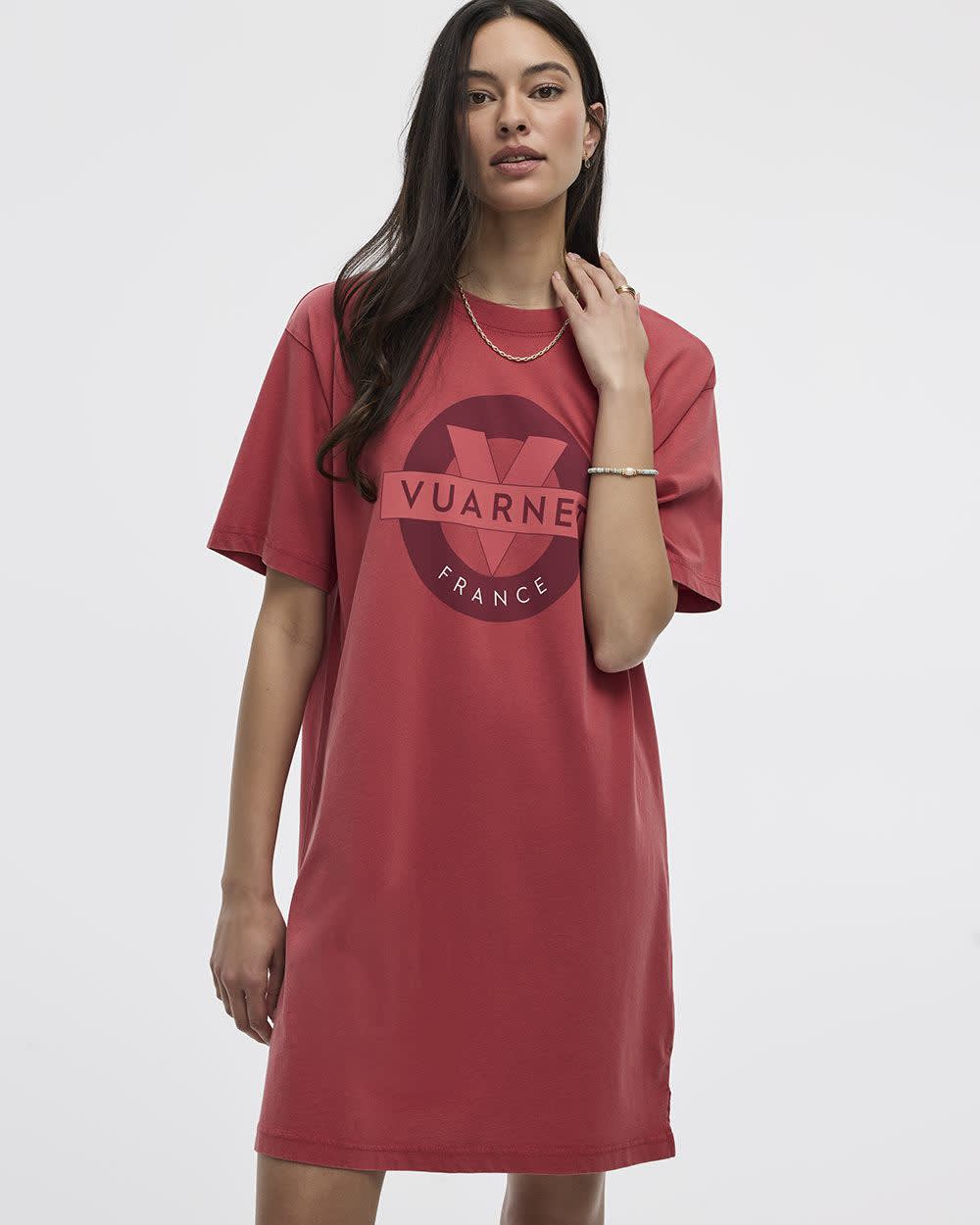 Cette jolie robe t-shirt dotée de manches courtes et d'un classique col rond arbore le fameux logo Vuarnet, signe de qualité et de durabilité.