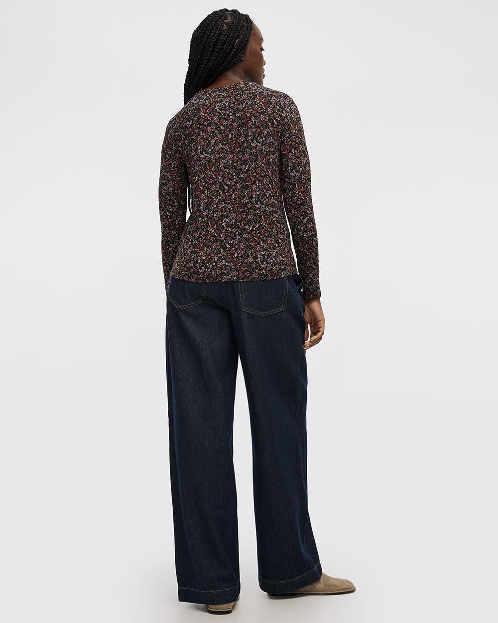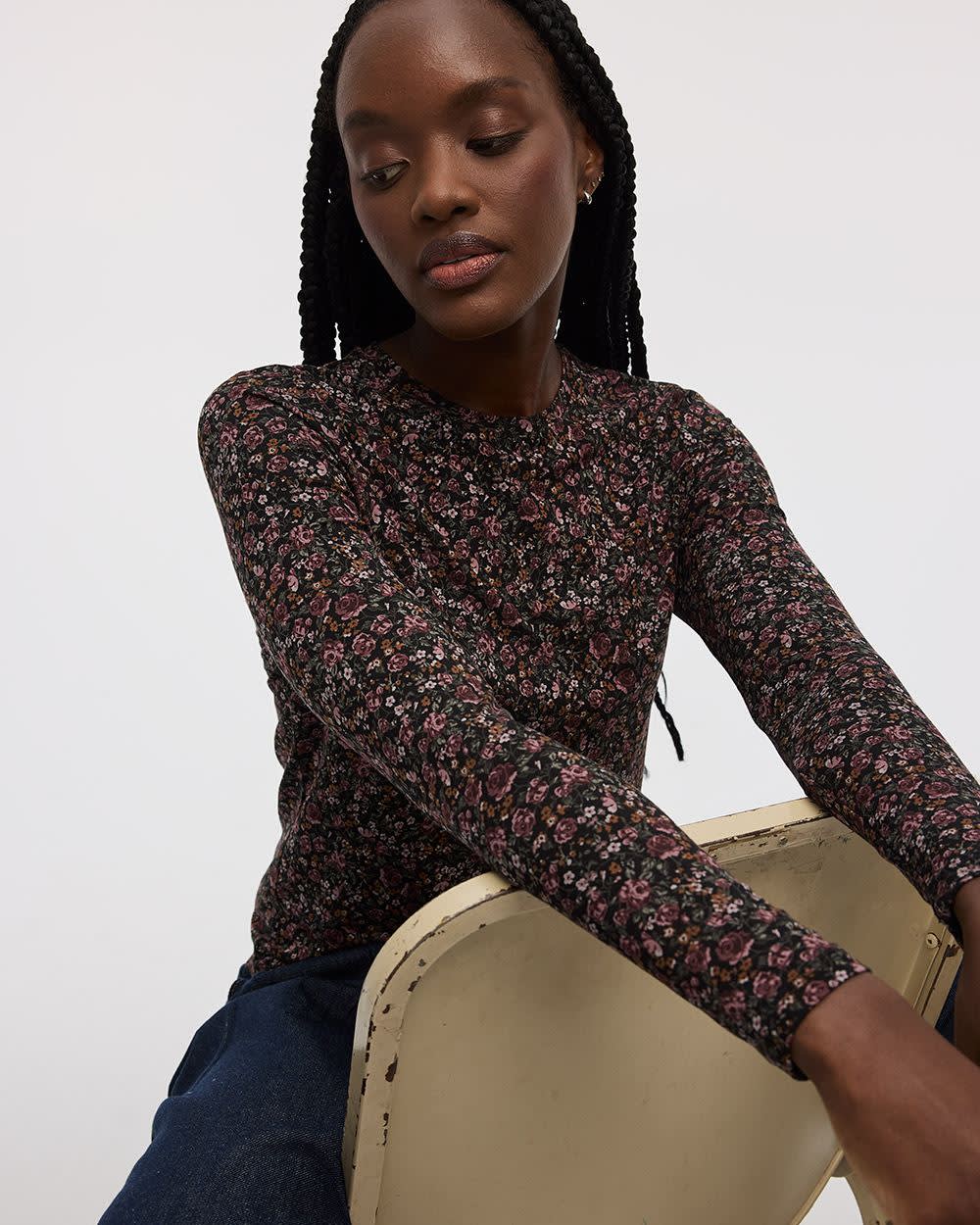 "Un essentiel, ce t-shirt à col rond et manches longues conçu en doux tricot est si confortable que vous ne pourrez plus vous en passer.
