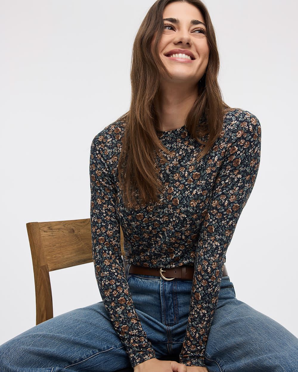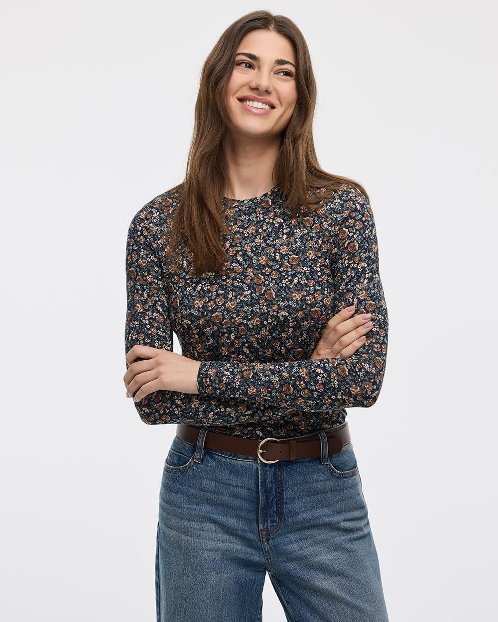 "Un essentiel, ce t-shirt à col rond et manches longues conçu en doux tricot est si confortable que vous ne pourrez plus vous en passer.