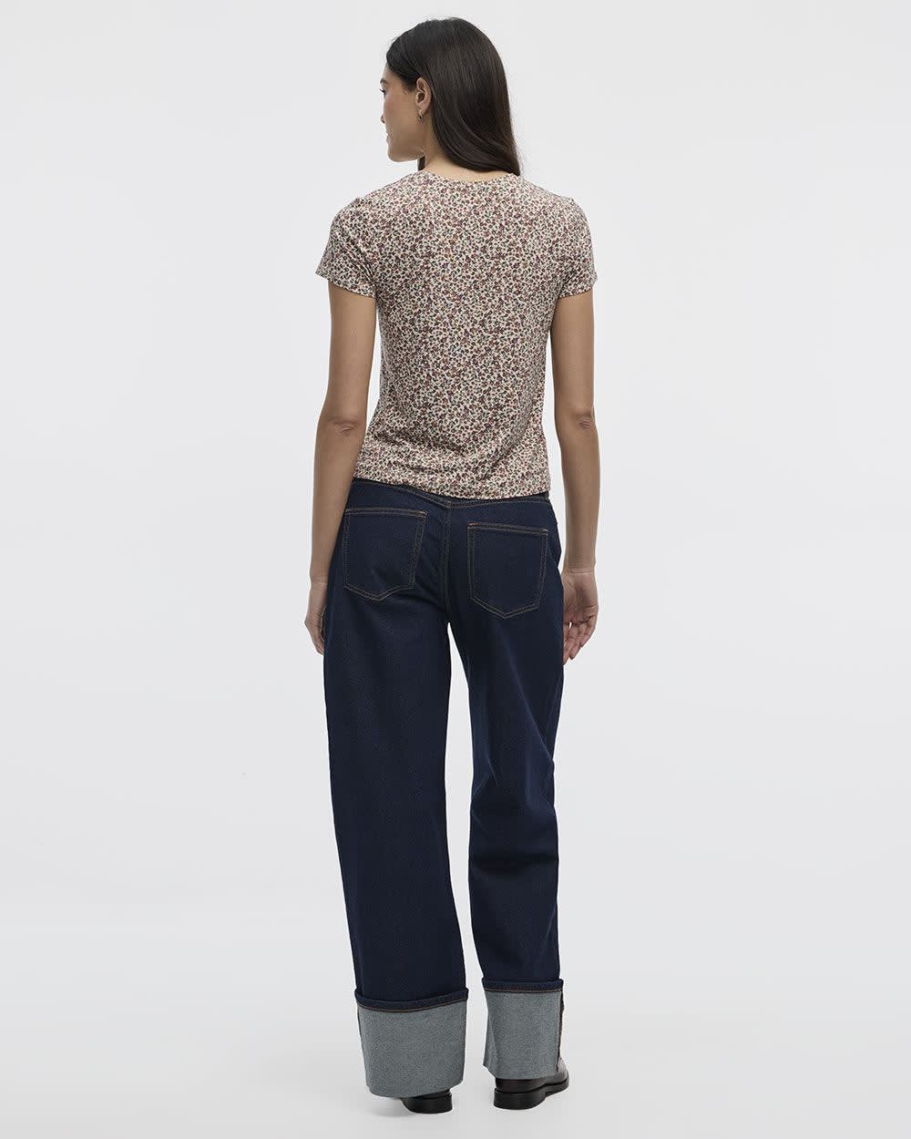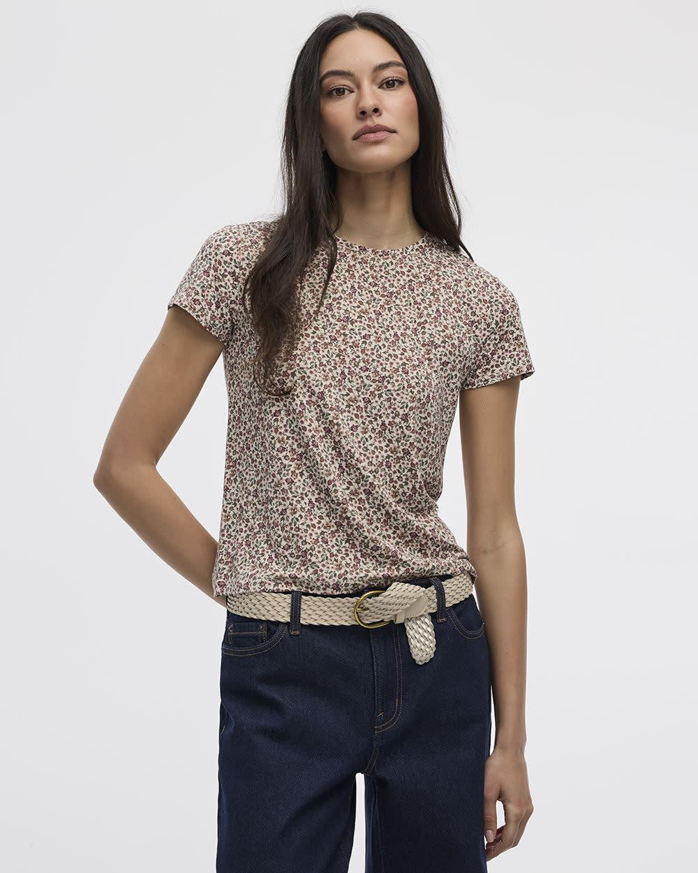 "Ce t-shirt à col rond, décoré d'un superbe imprimé, est un essentiel à ajouter à votre garde-robe.