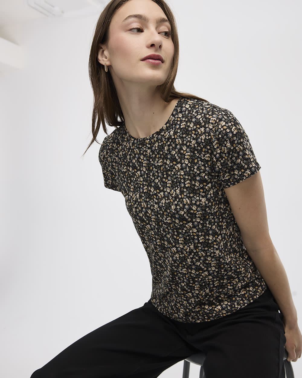 "Ce t-shirt à col rond, décoré d'un superbe imprimé, est un essentiel à ajouter à votre garde-robe.