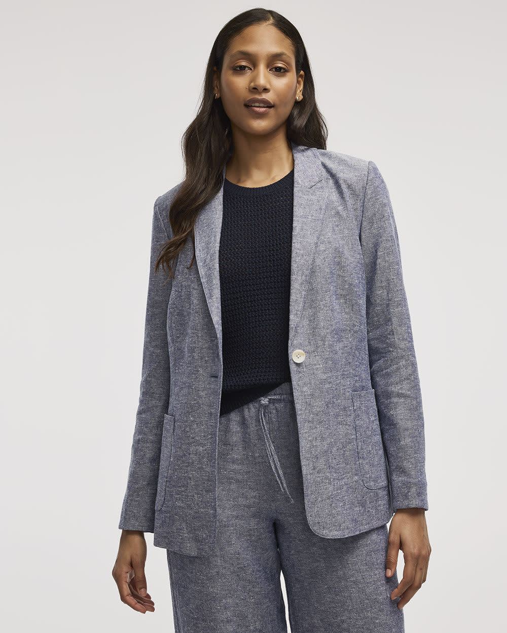 Ajoutez une touche professionnelle à n'importe quelle tenue avec cet élégant veston en mélange de lin. Une pièce intemporelle qui ne se démode jamais.