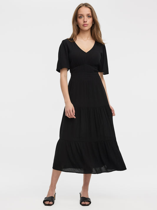 Short-Flutter-Sleeve V-Neck Tiered Midi Dress